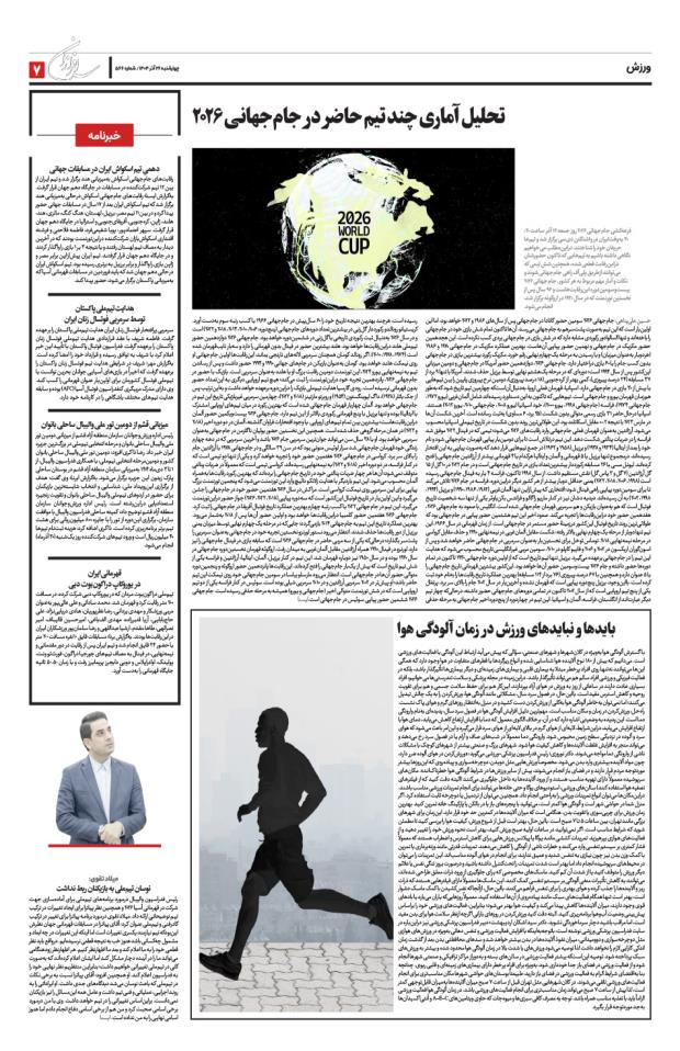 تحلیل آماری چند تیم‌ حاضر در جام‌جهانی ۲۰۲۶بایدها و نبایدهای ورزش در زمان آلودگی هواخبرنامهنوسان تیم‌ملی به بازیکنان ربط نداشت