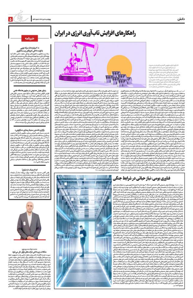 راهکارهای افزایش تاب‌آوری انرژی در ایرانفناوری بومی؛ نیاز حیاتی در شرایط جنگیخبرنامهمشکلات زیرساختی شرکت‌های نوآور حل می‌شود